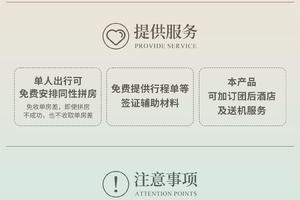预订我社该产品,根据需要可在下单页面选购签证代办服务,代办服务费(包含线上咨询、材料审核及反馈、行程酒店订单、约号),不包含官方收取的使馆签证费700元、签证中心服务费78元等其它未提及费用。视不同领区的情况,适用于35天-100天以后出行的团期。在下单前,您可联系并咨询在线客服,以获得指导后进行下单。